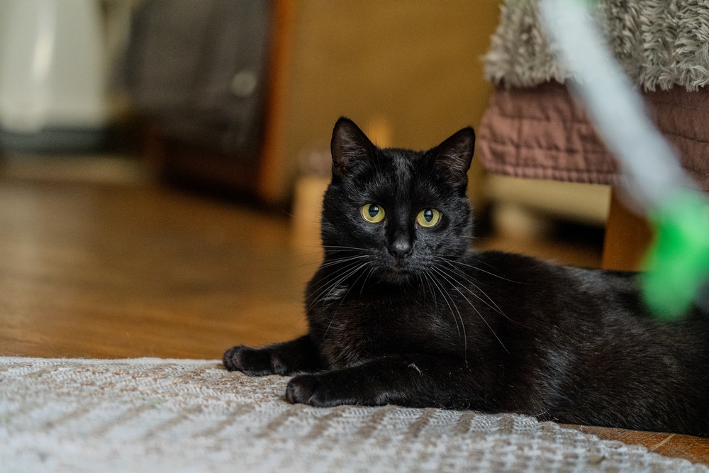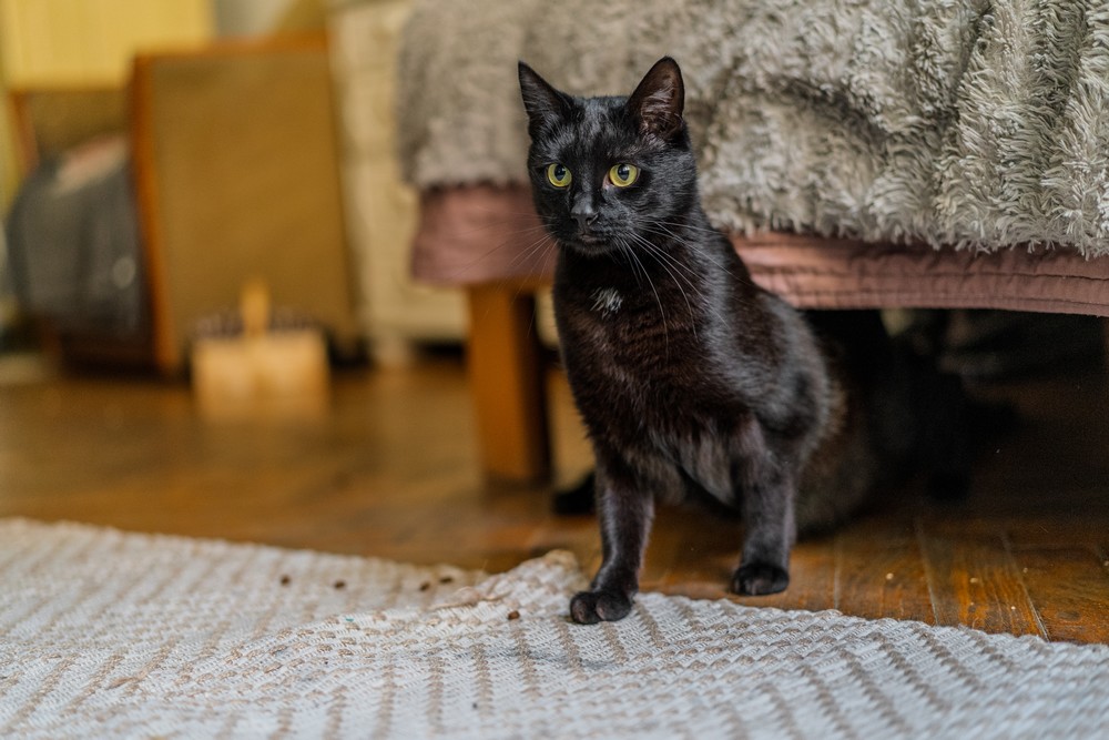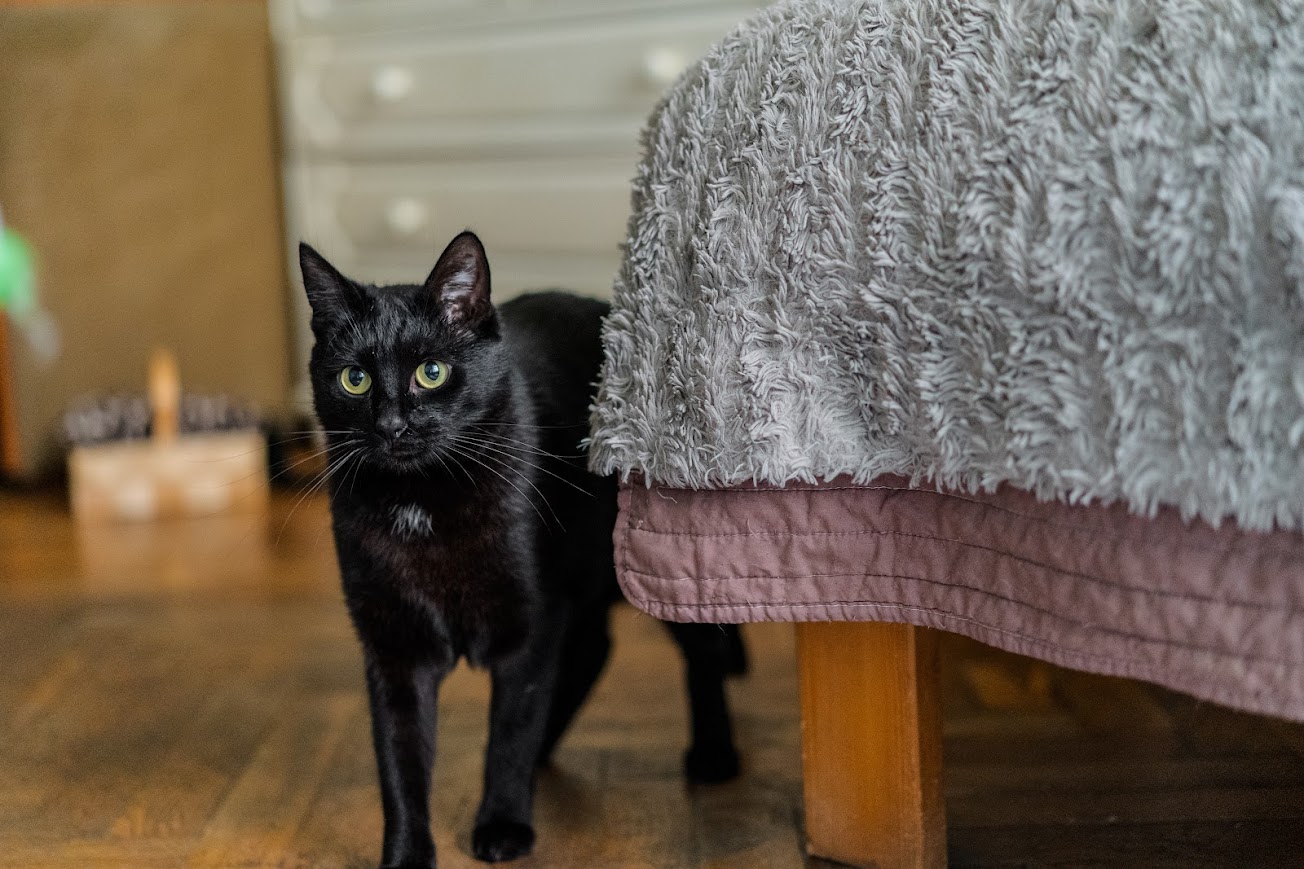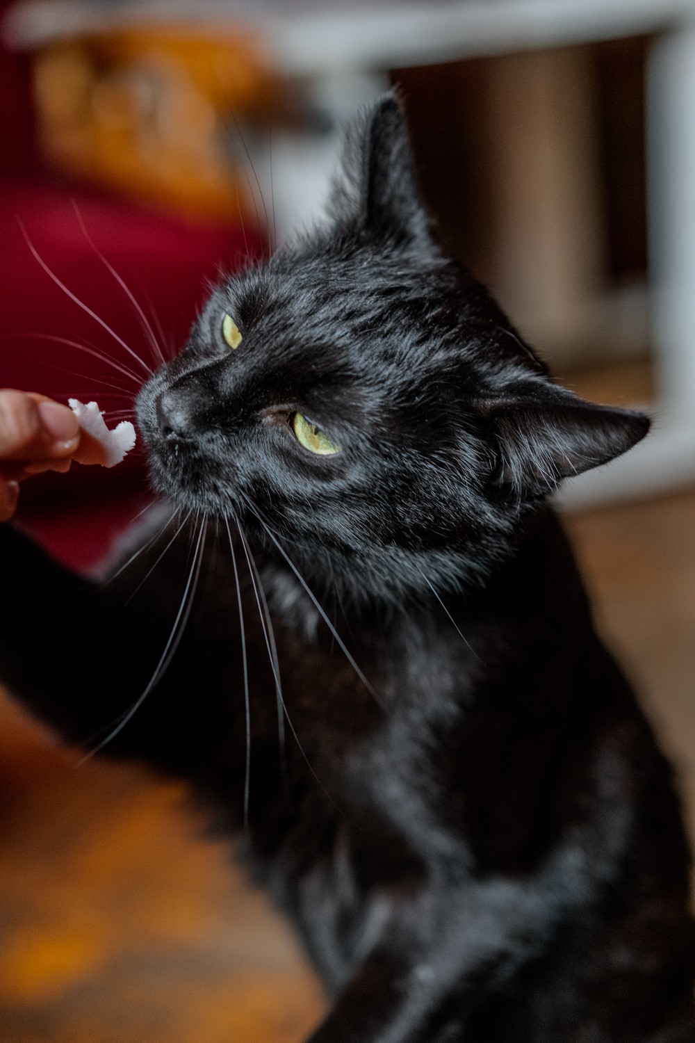 Odkąd się zrobił odważniejszy, to też chętnie z nami rozmawia – a to przypomina, że nie jadł nic od stu lat, a to informuje, że fajnie by się było teraz pobawić. Najczęściej jednak poluje na Cyzia lub siedzi w kartonie.