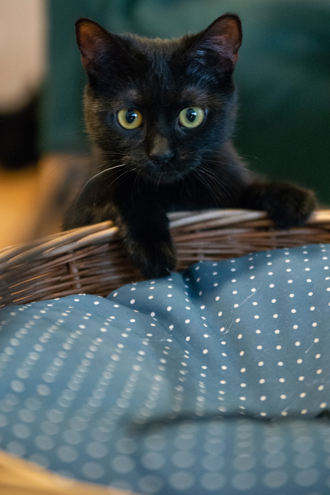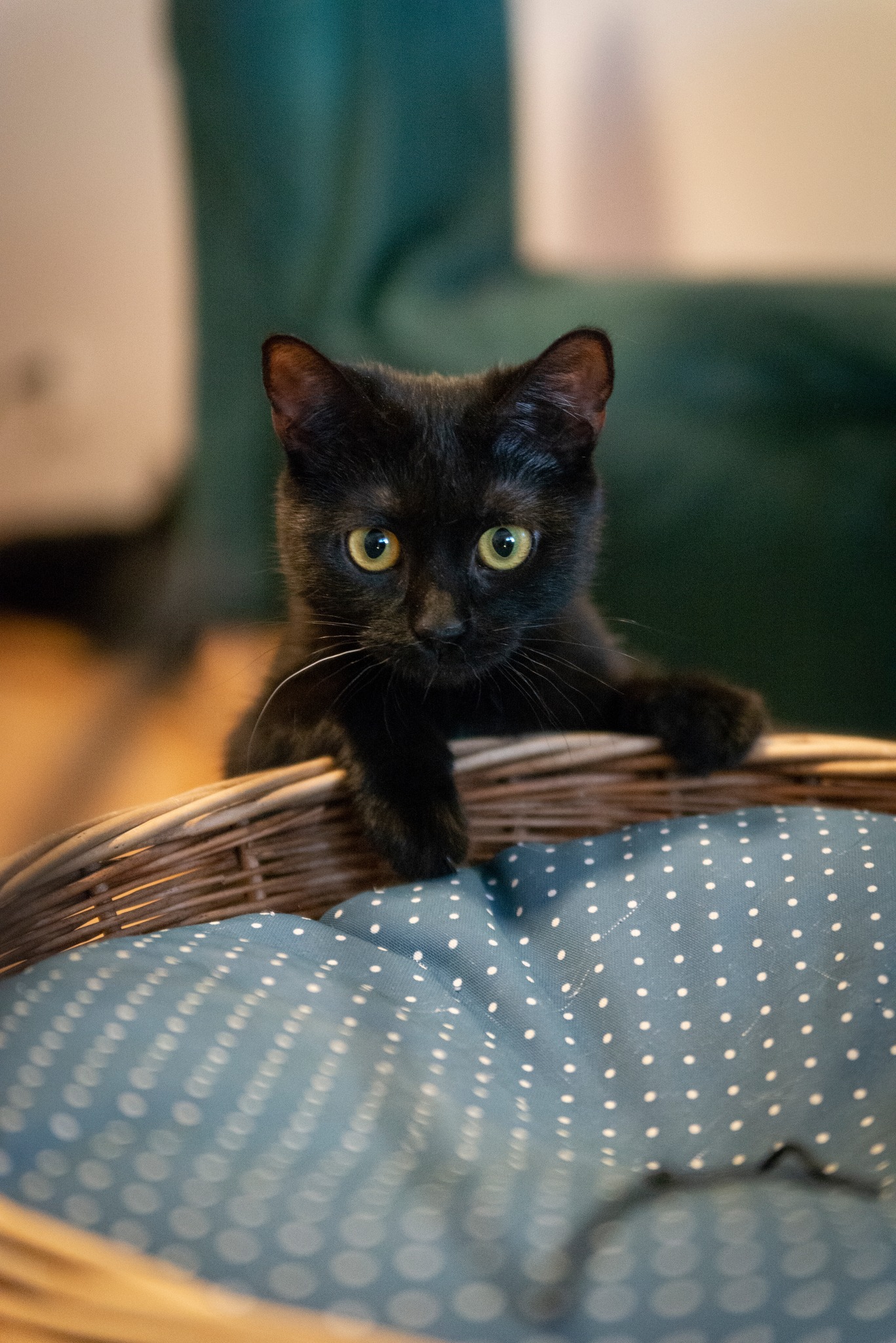 Po drobnych przygodach na początku naszej znajomości wzorowo ogarnia kuwetę. Daje się głaskać, chociaż jej pierwszym odruchem na wyciągniętą w jej stronę rękę jest ucieczka, to widać w tej kwestii postępy. Grzecznie śpi w nocy, nie miauczy praktycznie w ogóle.