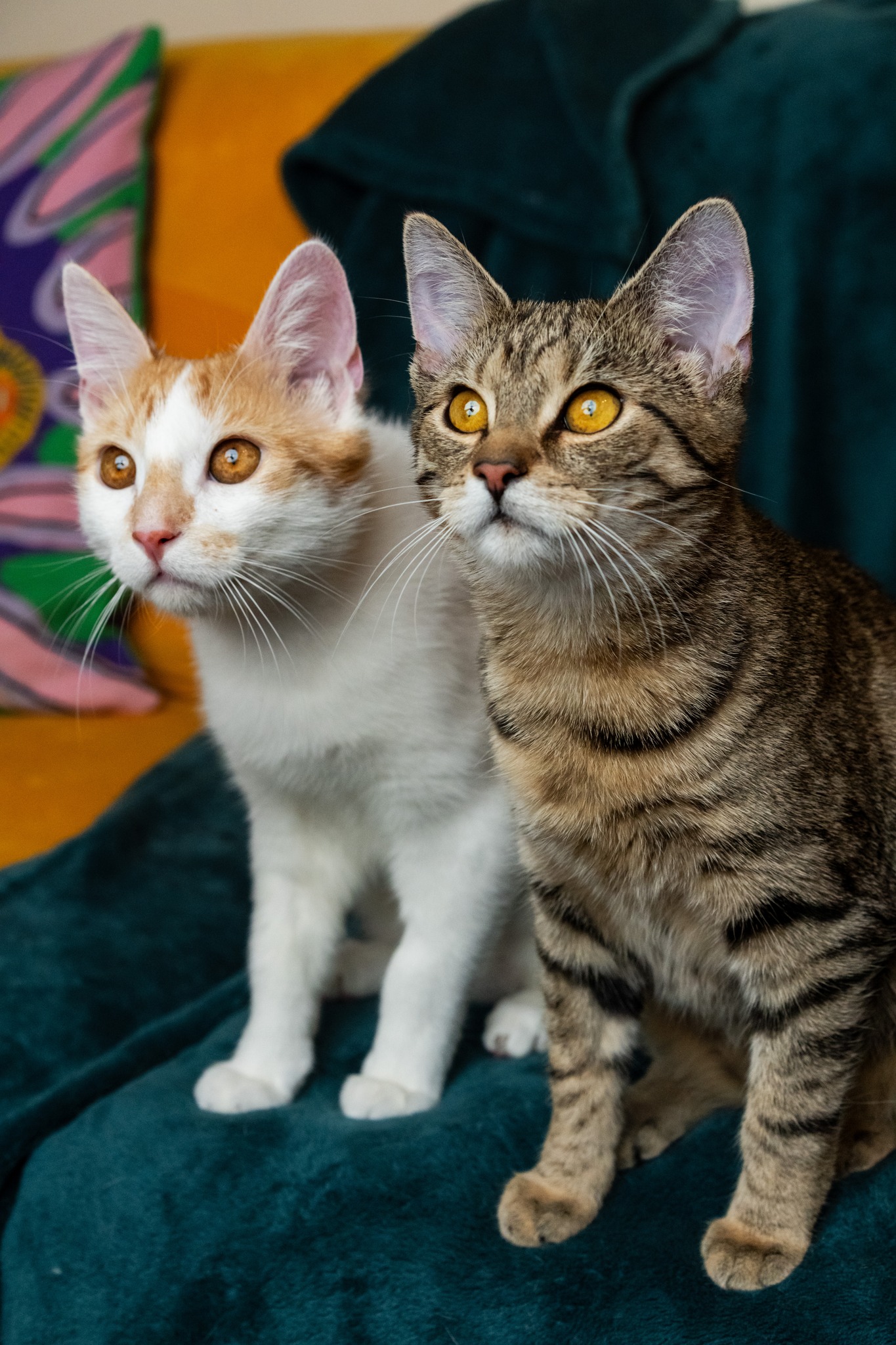 Są wychowywane pod okiem 3 kocich rezydentów. Spędzają czas na wspólnych zabawach i drzemkach. Szukają wspólnego domu z racji na ich bardzo zżyte relacje.