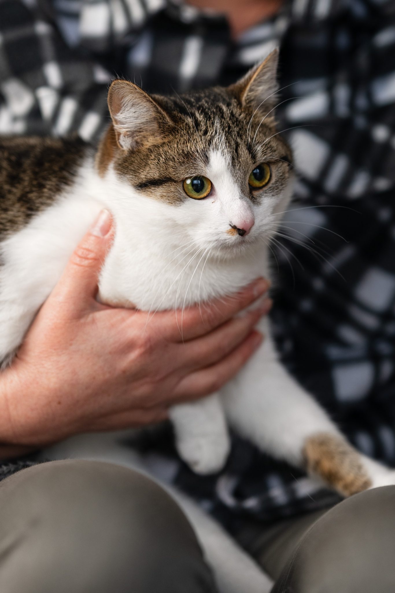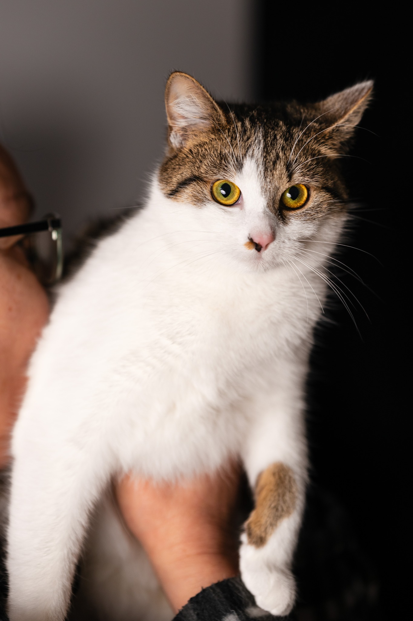 Ferdzia razem z siostrami Manią, Mariolką i Waldzią, przyjechała do fundacji z Niepołomic, obecnie koteczki mieszkają w domu tymczasowym, gdzie czekają na adopcję. Przepiękne biało-bure koteczki, każda z własnym wzorkiem burym i własnym wyjątkowym charakterem.