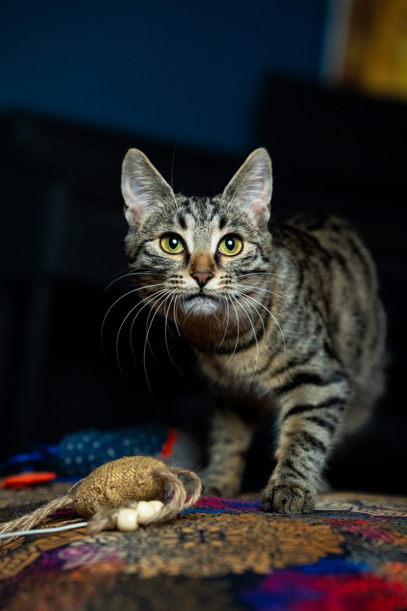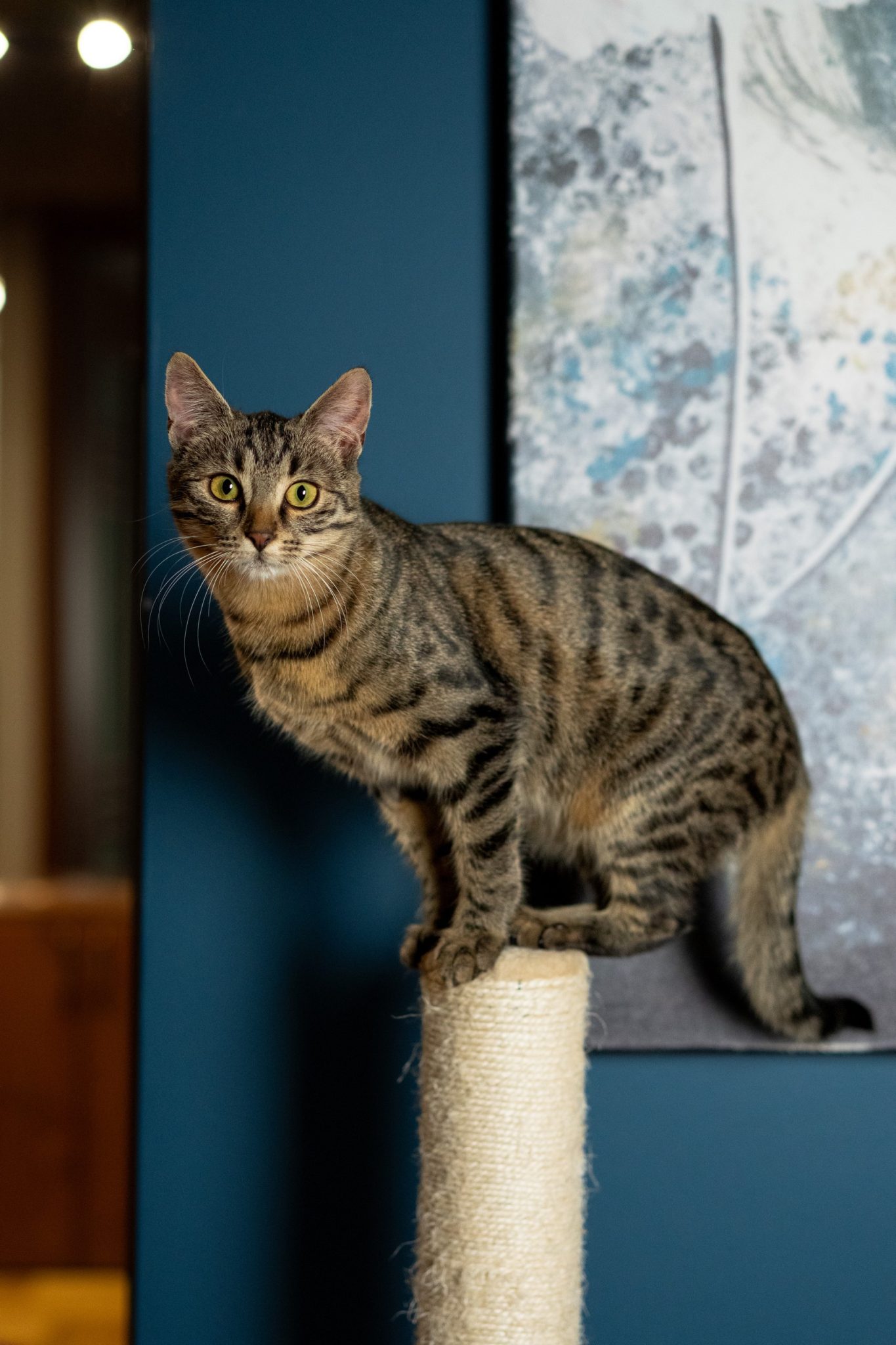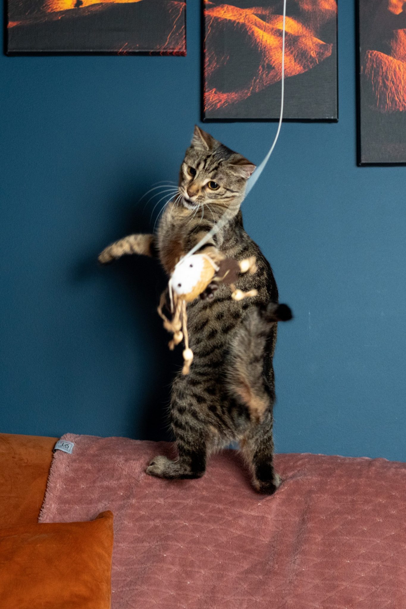 To rezolutna, pełna wigoru koteczka, która od pierwszych chwil potrafi skraść serce. Uwielbia zabawę, zarówno z człowiekiem i swoimi ulubionymi wędkami, jak i ze starszym, przybranym bratem. Ale także sama doskonale potrafi sobie zorganizować zajęcie.