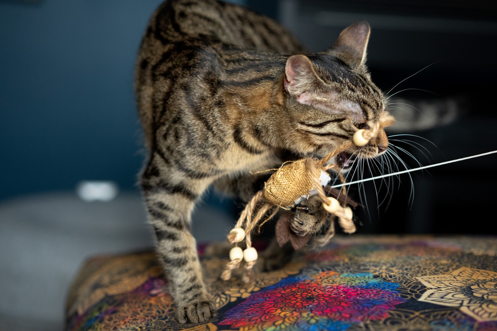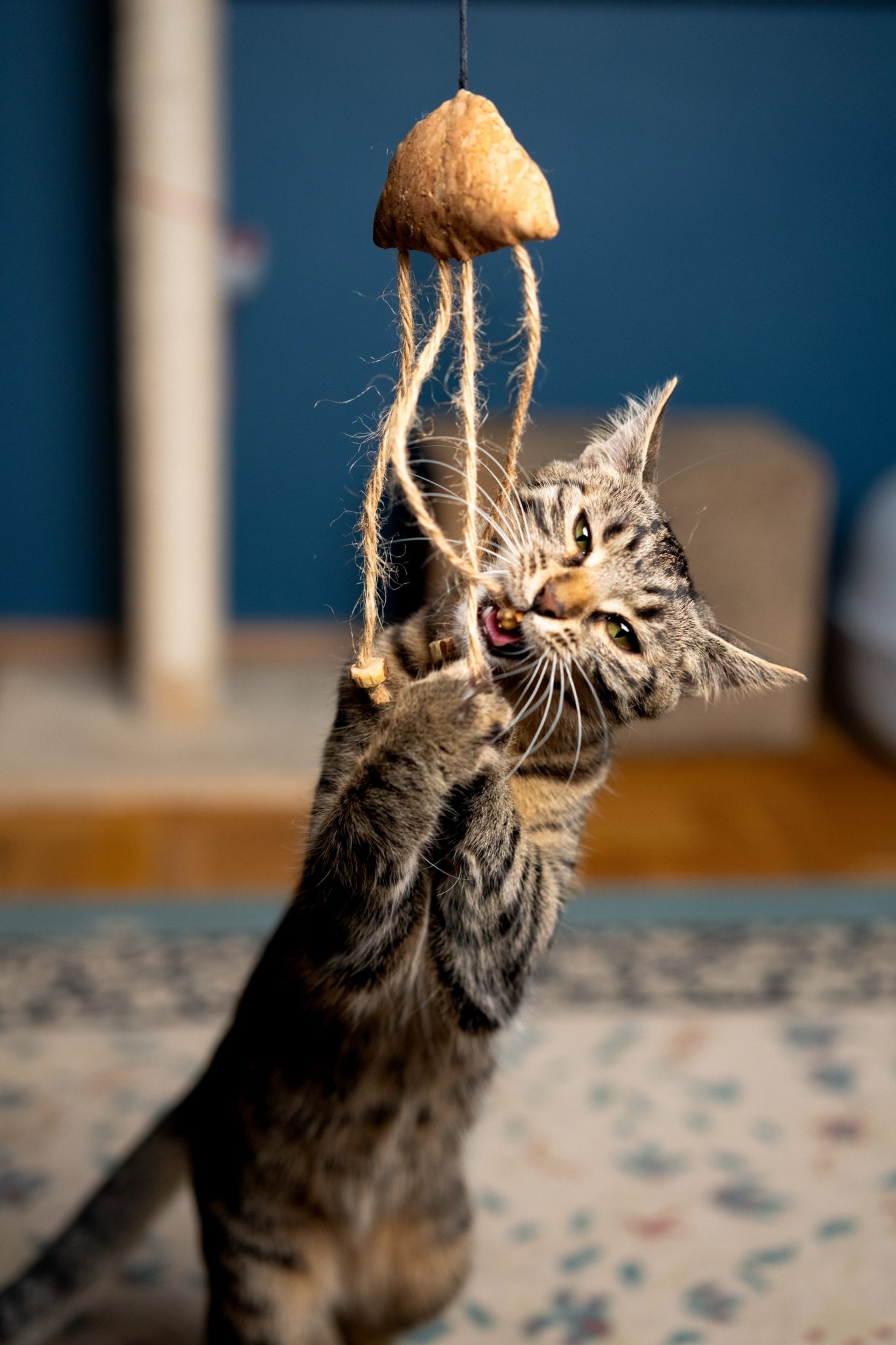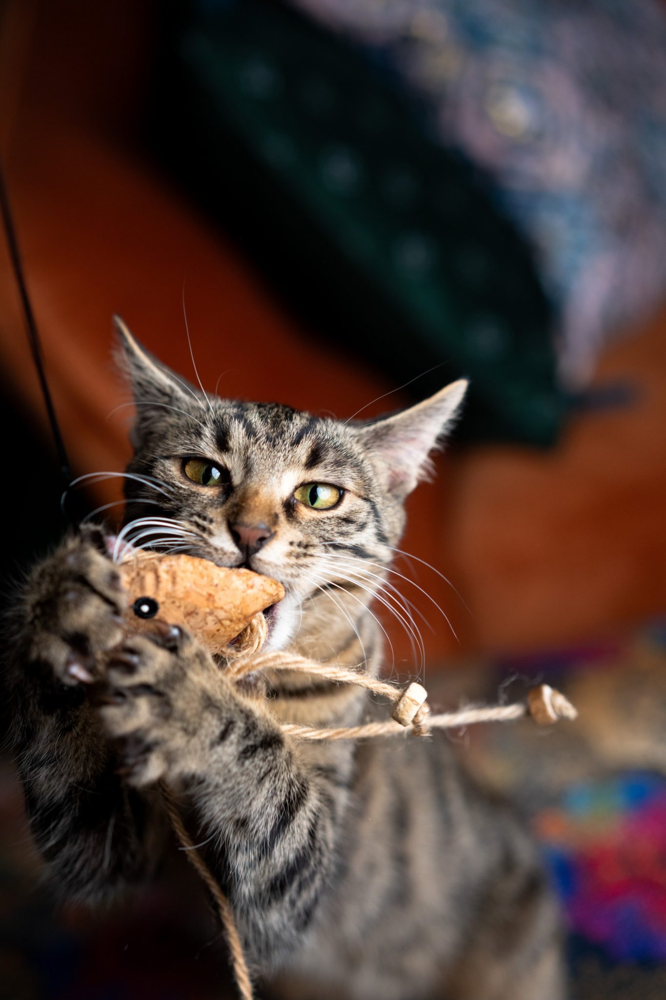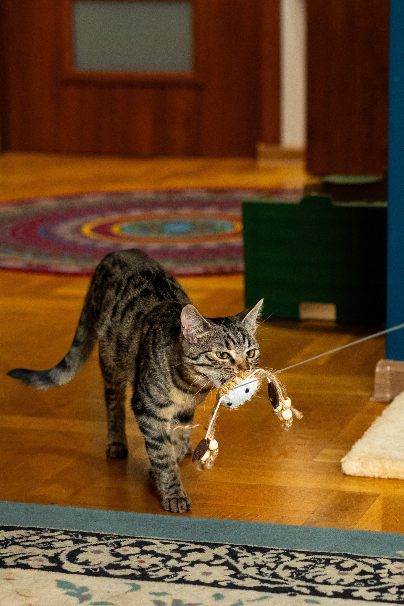 To rezolutna, pełna wigoru koteczka, która od pierwszych chwil potrafi skraść serce. Uwielbia zabawę, zarówno z człowiekiem i swoimi ulubionymi wędkami, jak i ze starszym, przybranym bratem. Ale także sama doskonale potrafi sobie zorganizować zajęcie.