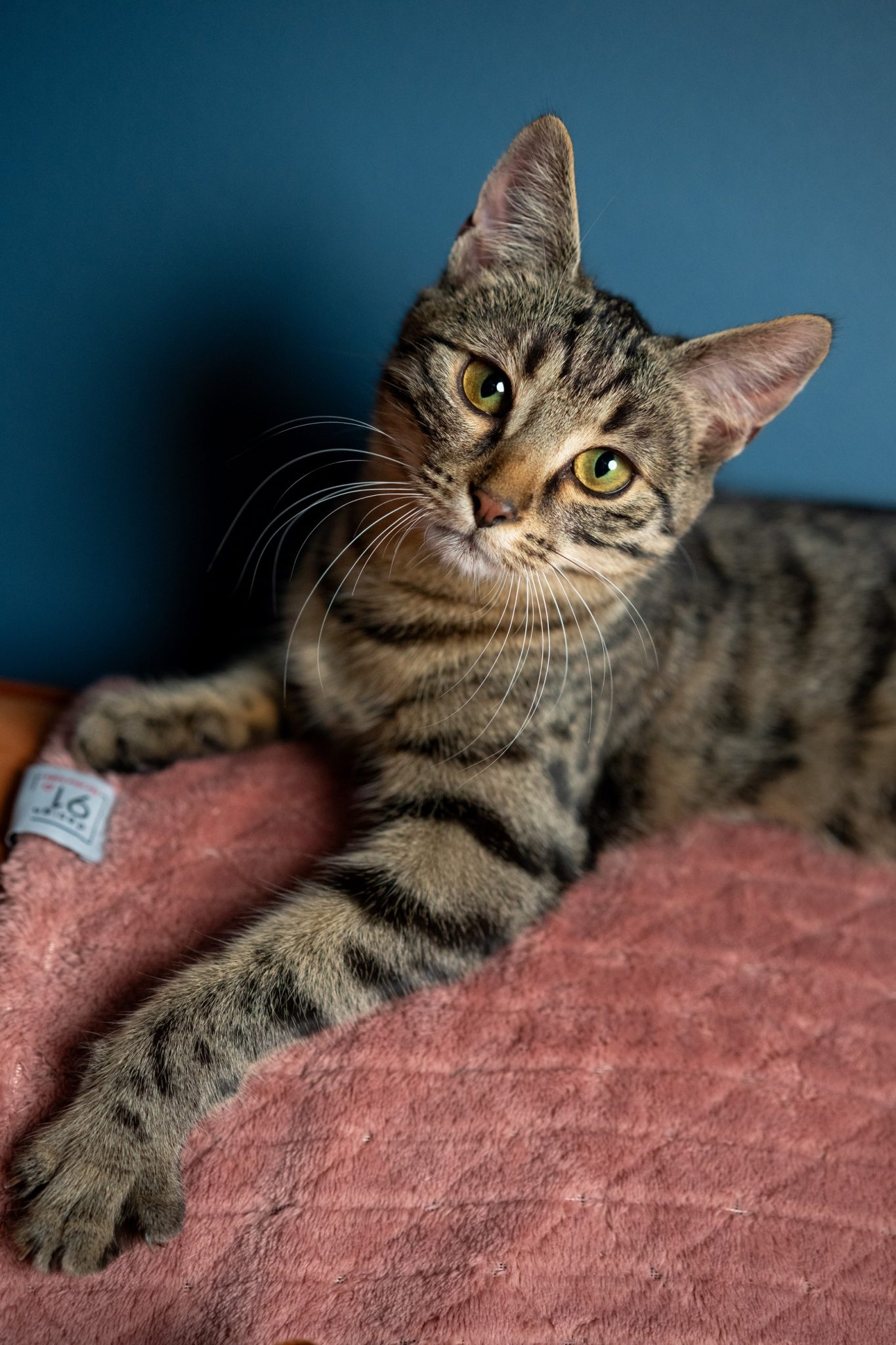 Jest po zabiegu kastracji i szczepieniu, gotowa do zmiany domu. Najlepiej do domu z innym kotem, który pomoże jej rozładować energię, żeby było jej raźniej i miała swojego towarzysza zabaw.