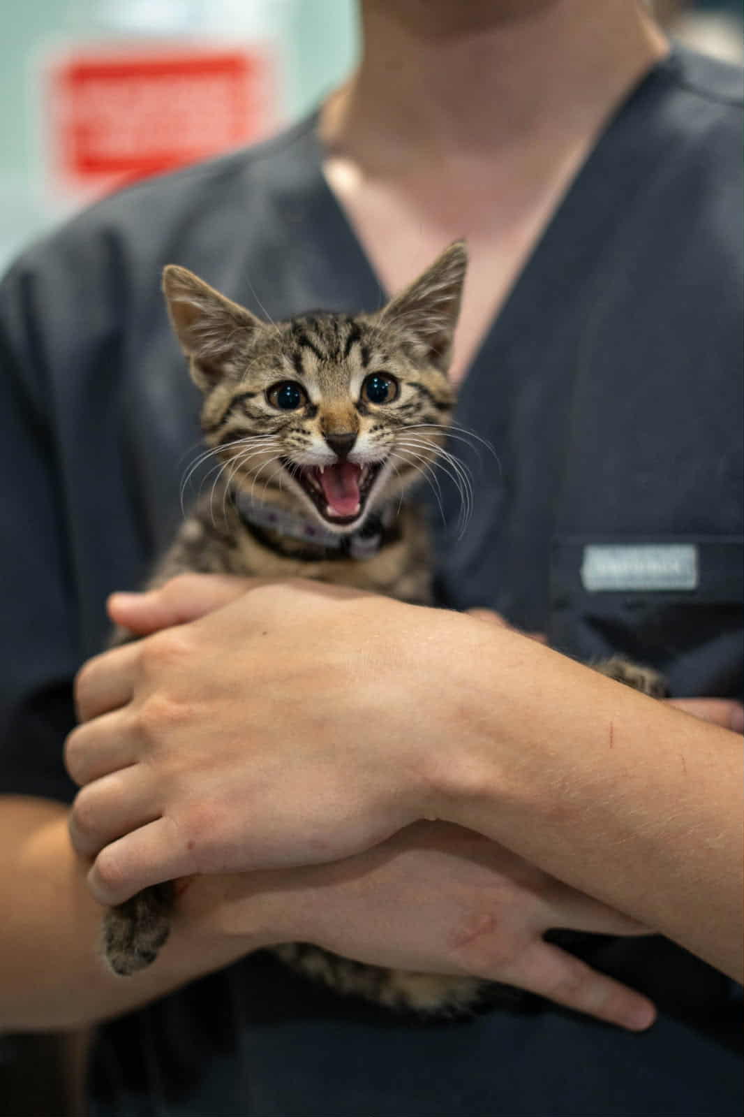 Iskierka trafiła do fundacji razem z rodzeństwem z krakowskiej ulicy, obecnie koteczka mieszka w domu tymczasowym, gdzie czeka na adopcję.