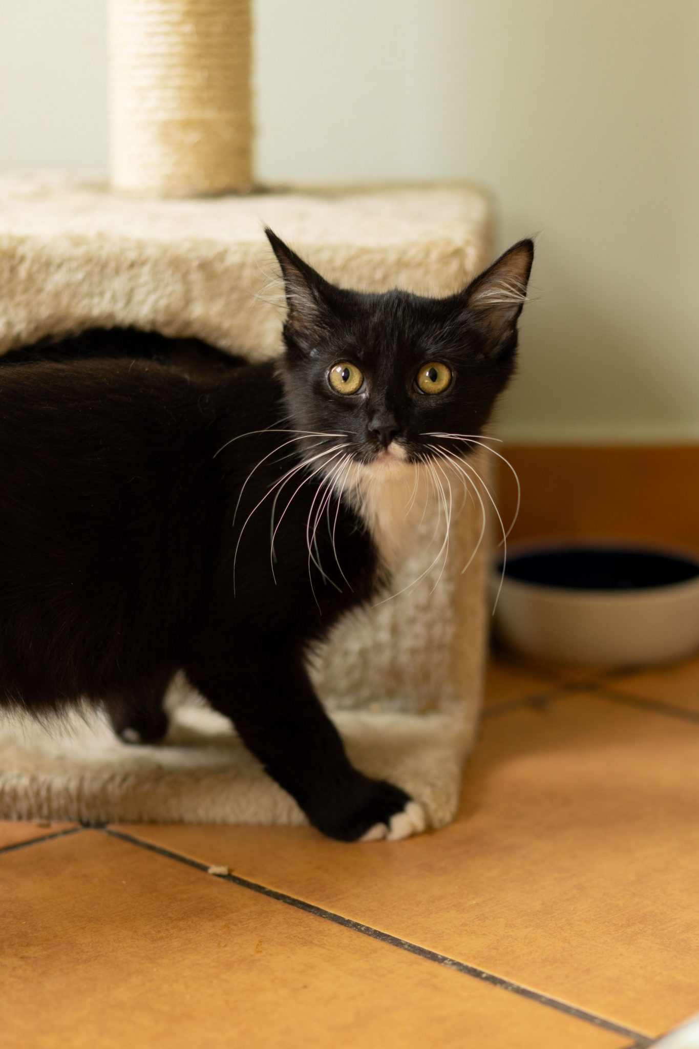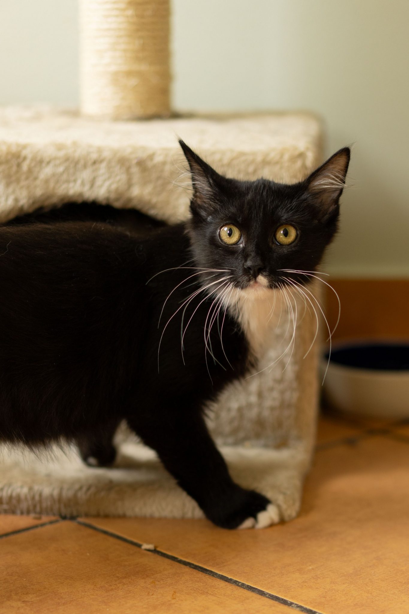 Lord wśród rodzeństwa wyróżnia się przepięknym i eleganckim futerkiem kociego pingwina, dostojne białe wąsy ma sparowane z uroczymi białymi frędzelkami w uszkach, a na świat patrzy cudnymi złotawymi oczami.