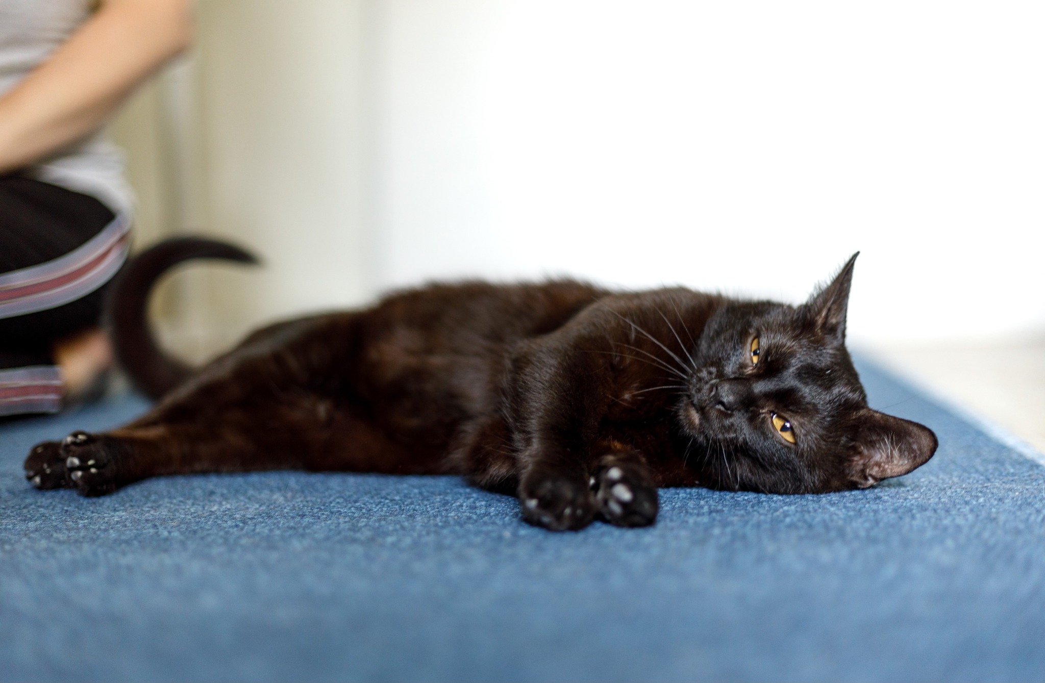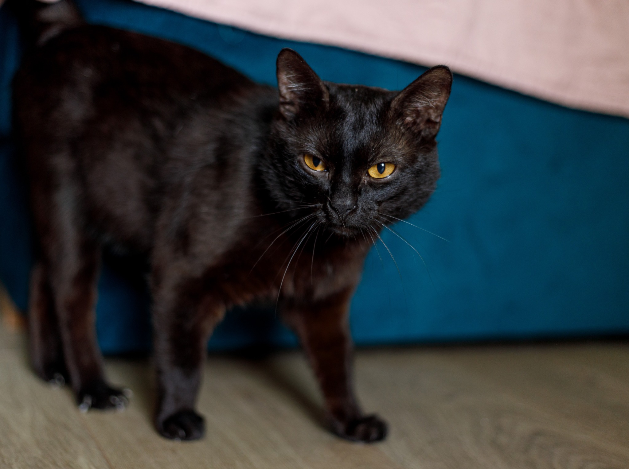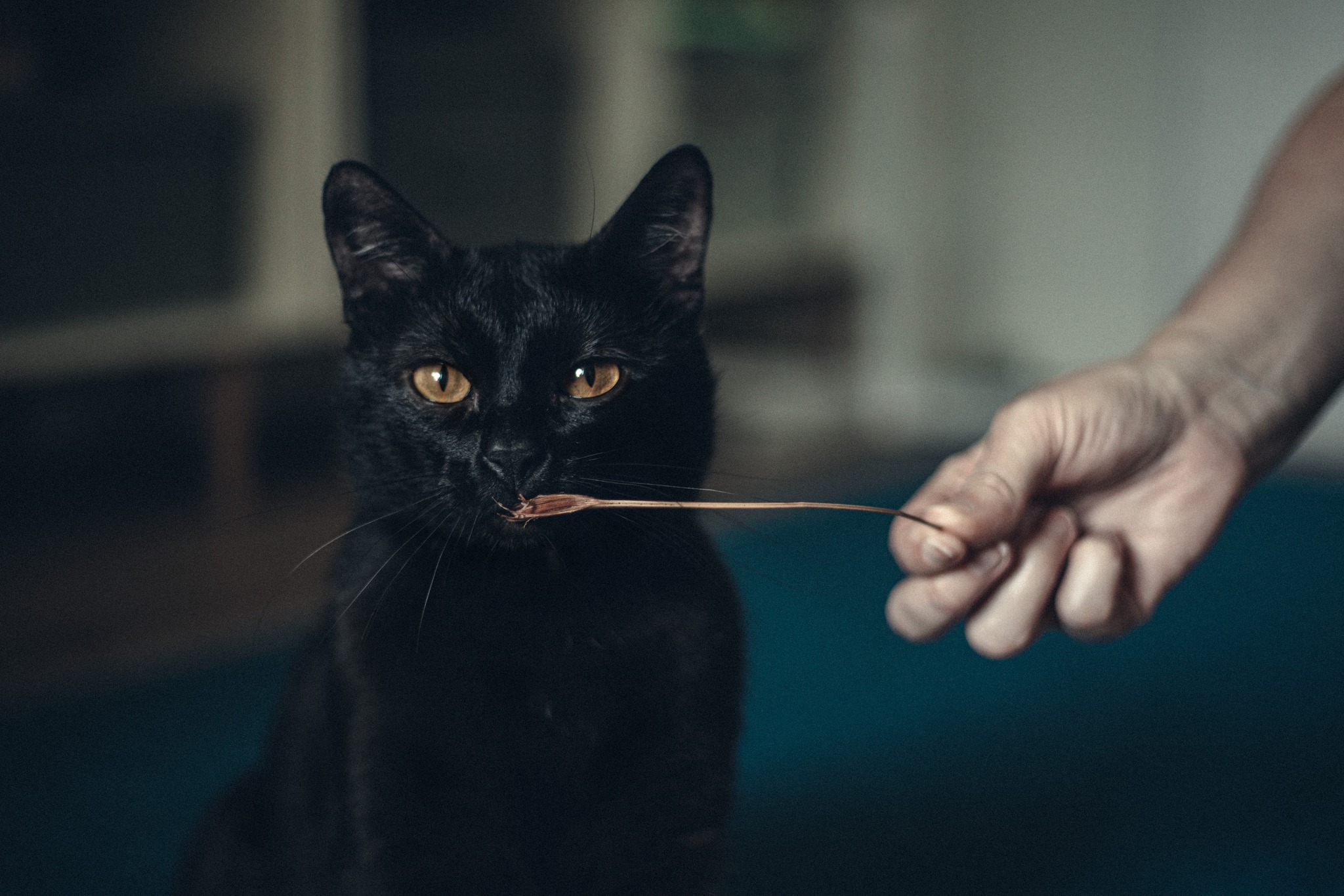 Lucek to młody kocurek, cały czarny, z maleńką, białą krawatką na gardle i pięknymi, bursztynowo-żółtymi oczami. Zdrowy i wykastrowany. Jest kotem aktywnym, ale lubi też długie drzemki w swoich ulubionych miejscach. Ulubionymi zabawkami są… patyczki przyniesione z podwórka, czasem plastikowa piłeczka i sprężynka, sznurówka i rybka z walerianą. To kotek lubiący okazywać czułości – często barankuje i się łasi. Lubi być czasem brany na ręce (jak tego chce to mocno kręci się wokół ludzkich nóg). Coraz częściej docenia spanie na ludzkich kolanach, choć nigdy nie jest na nich przesadnie długo. Lubi być jednak blisko człowieka, często za nim podąża. Ma dobry apetyt, ulubione karmy są z kurczakiem, czasem rybą (nie przepada za wołowiną). Od początku bezbłędnie korzysta z kuwety. Obecnie mieszka z kocią siostrą – on bardzo jest nią zainteresowany, widać, że chciałby się zaprzyjaźnić, ale drugi kot nie odwdzięcza się tym samym zainteresowaniem. Lucek może być zaadoptowany samodzielnie (wtedy trzeba będzie mu poświęcać więcej uwagi na zabawę), ale świetnie nadałby się też do dokocenia, szczególnie w domu z drugim, aktywnym kotem. Początkowo boi się nowych osób, ale łatwo można wygrać jego serce zabawą i spokojnym podejściem. Jest też dość ciekawski. Lubi być głaskany, ale czasem go to nakręca – jak jest przebodźcowany, może z przejęcia syczeć lub zamachnąć się łapką – nie jest to jednak przejaw agresji. Jednakże z tego względu nie polecałabym go do adopcji do domu z małymi dziećmi, a jeżeli z dziećmi to takimi, które nauczą się odczytywać sygnały, kiedy kota należy przestać dotykać. Ogólnie to bardzo miły i zabawny kot!