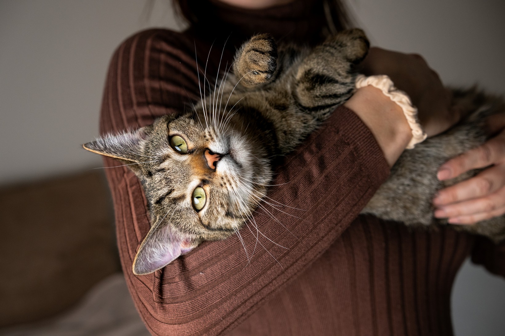 Nie jest kotkiem nakolankowym, ale przyzwyczaił się do noszenia go, już nie ucieka w popłochu tylko oddaje się głaskaniu, mrucząc przy tym z zadowolenia.