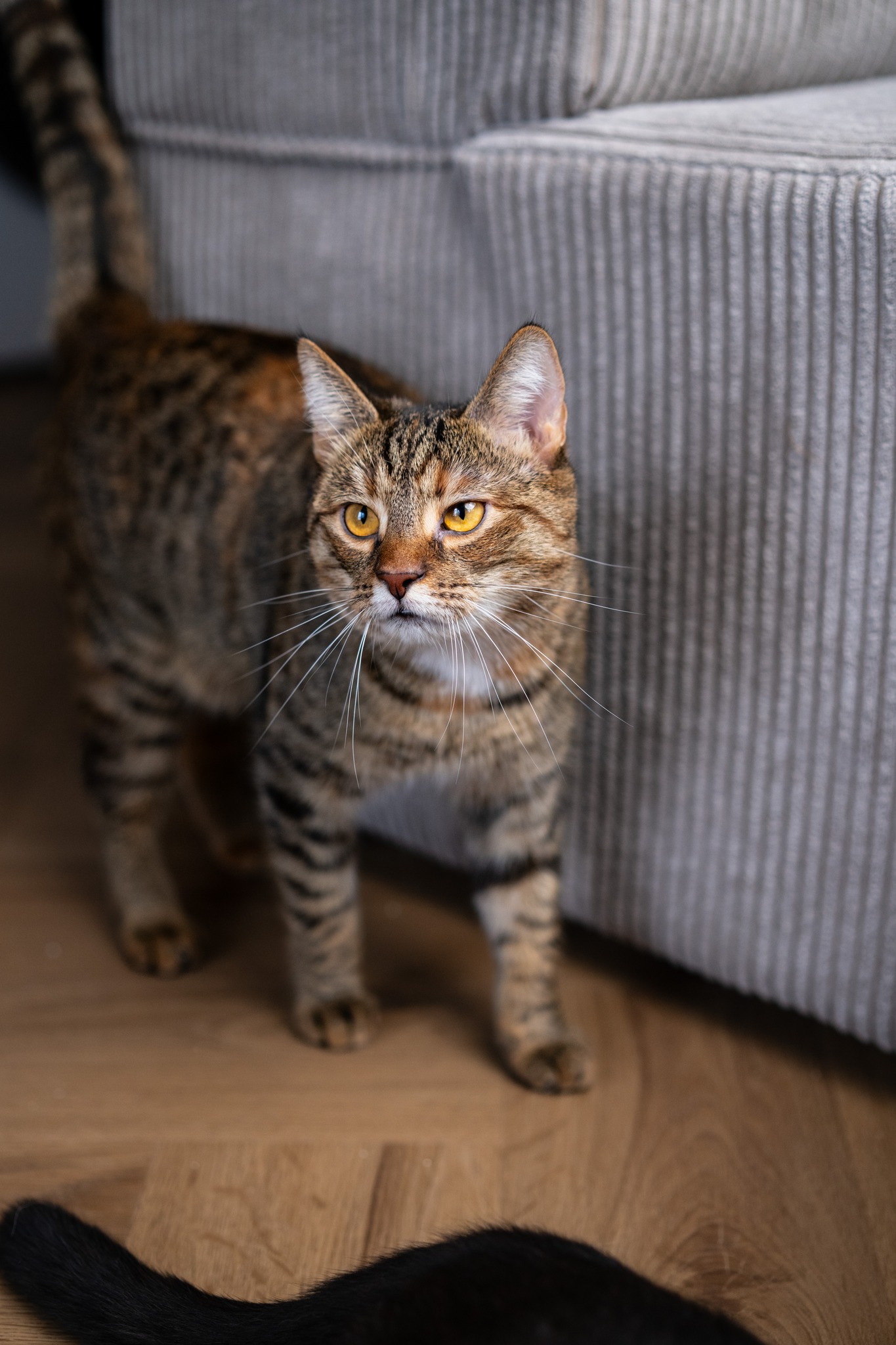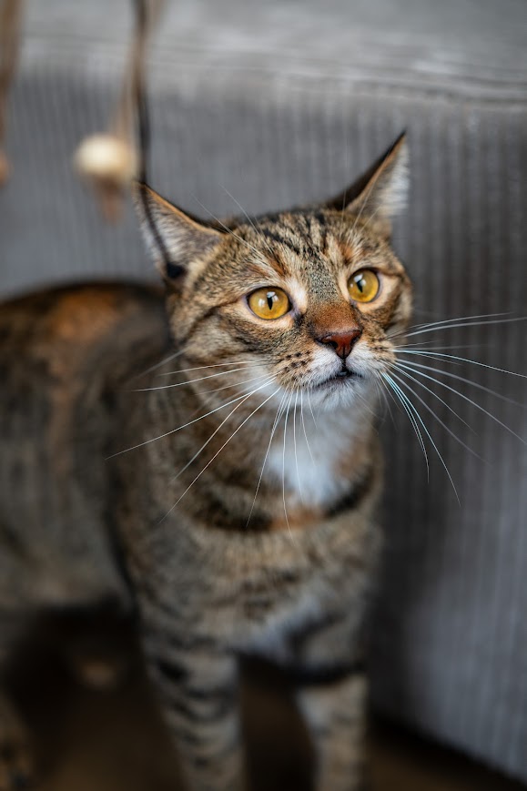 Szogun to prawdziwy żywioł. Jej temperament zaskakuje nas każdego dnia. Gdy coś jej się nie podoba, od razu daje o tym znać. W nowych miejscach jest raczej wycofana i potrzebuje więcej czasu na aklimatyzację. Jest młodym, dość aktywnym kotem (zwłaszcza na widok muchy).